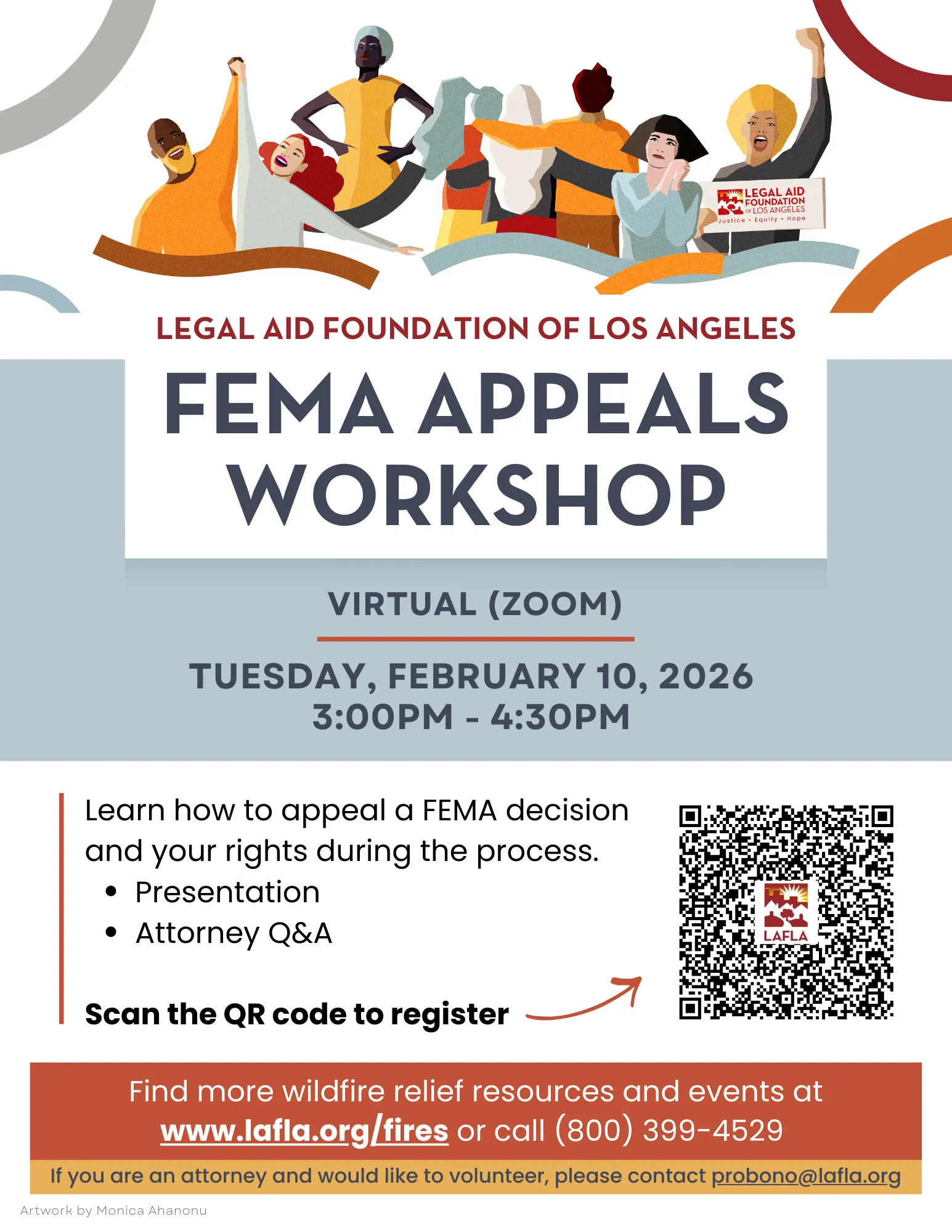 A year after the wildfires, many survivors are still struggling to secure disaster relief. If you are navigating the appeals process after a denial from FEMA, we may be able to help. Join LAFLA’s upcoming FEMA Appeals Workshop to get step-by-step guidance on how to file an appeal and understand your rights in the process. The session will feature a presentation and a live Q&A with an attorney to answer all your questions.